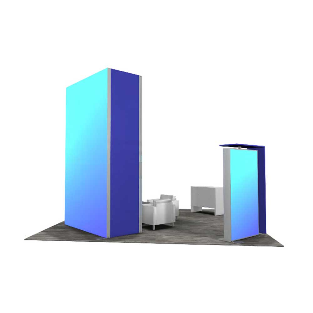 Scalable & Reconfigurable: Scale 10’ x 10’ and 10’ x 20’ inlines to 20’ x 20’ islands by rearranging existing portable properties or adding additional components such as large-scale light box towers.