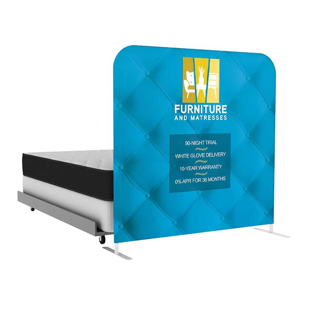 The lightweight aluminum frame allows for fast assembly and easy repositioning, while the vibrant fabric graphics install quickly using a pillowcase-style design with a secure zipper closure. Choose single-sided or double-sided printed headboards to maximize visibility and create consistent retail displays throughout your showroom.